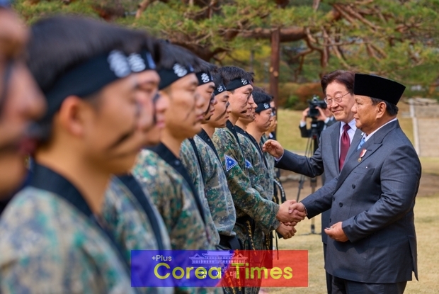 [플러스코리아=윤진성 기자]이재명 대통령과 국빈 방한한 프라보워 수비안토 인도네시아 대통령은 오늘 오후 청와대 녹지원에서 육군 태권도 시범대 공연을 관람했다.