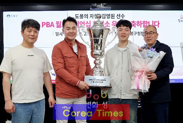 [플러스코리아=윤진성 기자]서울 도봉구가 지난 4월 2일 도봉구청 구청장실에서 2025-2026 프로당구 PBA 월드챔피언십 최연소 우승자 김영원 선수 격려 차담회를 열었다.