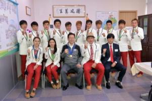 이재명 성남시장, 인천아시안게임 출전선수단 격려남현희 등 성남시 직장운동부, 세계속의 성남을 알리다